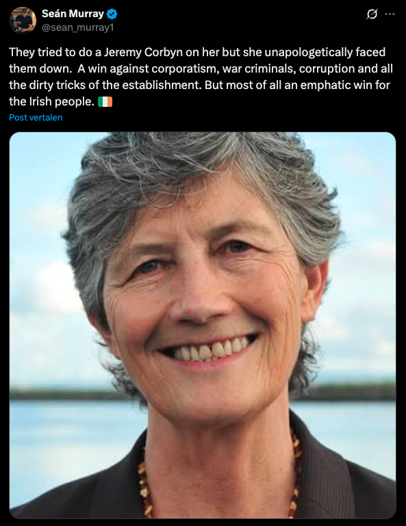 De strategie van de Ierse regering en media om met een campagne van leugens en roddels te verhinderen dat Catherine Connolly zou verkozen raken als Iers president is spectaculair mislukt. Ierland verkoos massaal een socialistisch politica tot president.