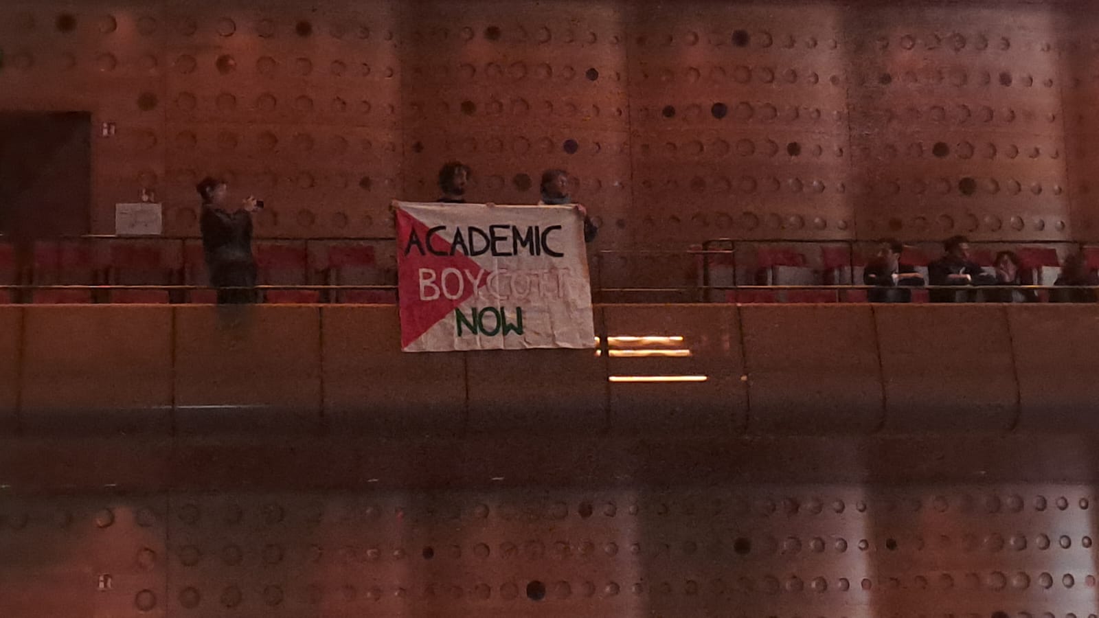 Albanese werd zeer luid toegejuicht toen zij met haar eredoctoraat de zaal verliet. Terwijl academici van de drie universiteiten haar daarop volgden, werd zeer luid de slogan “Stop Funding Genocide” gescandeerd, een niet mis te verstane verwijzing naar de academische samenwerking die nog steeds doorgaat.